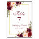 Cartão de Mesa de Casamento Dourado da Watercolor Floral Burgundy Marsala