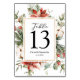 Numeração De Mesa Watercolor Winter Poinsettia & Green Pine Tree