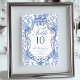 Numeração De Mesa Wedding Crest Delft Blue Floral Elegant Script