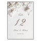 White sculptured 3D roses arched wedding table numbers card.