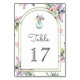 Elegant wedding table number featuring beautiful flowers and modern typography.
