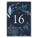 As placas de números botânicos de inverno chic apresentam uma borda redonda de folhagem azul-aquática gelada em um fundo de marinho, ao redor do número de sua mesa. Design repete-se no lado oposto. Coordena-se com a nossa suíte de convite para casamento do Winter Azure. NOTA: personalize com os números de tabela um a um e adicione ao carrinho individualmente.