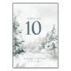 Esta bela mesa maravilhosa de inverno mostra uma trilha de neve em um fundo branco. Você pode personalizar esses números de tabela com os diferentes números de tabela para o seu casamento ou evento. O lado traseiro tem o mesmo design da frente para que o número da tabela possa ser visto de vários lados.