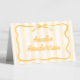 Set the tone for your special day with this trendy name cards featuring soft pale yellow vertical stripes and a casual handwritten typography. The delicate color palette creates a fresh, romantic feel, perfect for an outdoor summer venue. The cards are flat and need folding in two! Final folded size is 3,5x2,5"