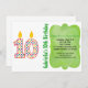 Alguém está fazendo 10 anos! Este convite tem um grande número 10 com bolinhas amarelas, verdes, azuis e vermelhas. Há uma chama no topo do número 10. Ao lado dele está uma etiqueta verde onde você personaliza com informações da festa. Veja as muitas outras cores e convites em nossa loja.