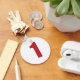 Número 1 em vermelho no botão branco chaveiro