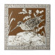 O Azulejo Minton produziu várias séries de azulejos similares de aves no final dos anos 1870 até os anos 80. Observe as paletas ao fundo atrás do pássaro.