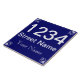Faça seu próprio número da casa. Adicione sua rua, e nome ou nome da empresa. Estilo do azulejo do espanhol. Branco no azul.