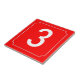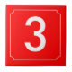 Borda branca estreita com filetes de círculo inverso nos cantos. Fundo vermelho. azulejos de números cerâmicos. Você personaliza com os números ou letras necessários para o seu azulejo cerâmico ou sinal de mosaico. azulejo para sinais à prova de tempo, números de casa