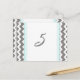 Azul-turquesa-azul-pastel elegante e clássico, cartas de números de mesas-cinzas e brancas com padrão retrô e chevron-zigzags. Personalize estes cartões para criar cartões de número de tabela personalizados para cada mesa no seu casamento. Padrão disponível em uma grande variedade de produtos de casamento correspondentes.
