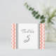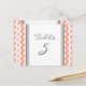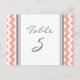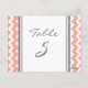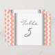 Pêssego elegante e moderno, laranja, cinza e cartões de número de mesas brancas com padrão retrô e chevron zigzags. Personalize estes cartões para criar cartões de número de tabela personalizados para cada mesa no seu casamento. Padrão disponível em uma grande variedade de produtos de casamento correspondentes.