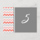 Pêssego elegante e clássico, cor-de-rosa-laranja, cinza e cartões de número de mesas brancas com padrão retrô e chevron zigzags divertido. Personalize estes cartões para criar cartões de número de tabela personalizados para cada mesa no seu casamento. Padrão disponível em uma grande variedade de produtos de casamento correspondentes.