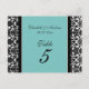 Número da Tabela Casada Cartões Teal Damask