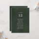 Um clássico caçador escuro moderno, verde e minimalista de tendências brancas, carta de mesa personalizada de assentos de convidado, jantada, num fundo vintage com aspecto angustiado, com quadro. +++++++++++ Matching stationery disponível na coleção.