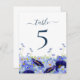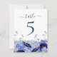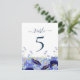 Torne fácil para os seus convidados de verão encontrar o lugar deles com estes cartões de número da mesa de flores silvestres elegantes de na moda. Com um belo roteiro de tipografia personalize a noiva e os nomes dos noivos e a data do casamento usando modelos fáceis de usar. Primavera de boho único e flores silvestres de verão, incluindo flores, papoilas, cosmos, esqueçam-me os nãos com folhagem delicada pintada pela artista Catherine Sweetman em azul de córnflor, azul esbranquiçado, azul marinho, roxo e verde. Ideal para o café da manhã do casamento, janto de ensaio ou dia do janto do casamento.