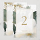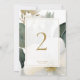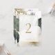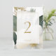 Chic e elegante. Este lindo número da mesa de casamento apresenta um adorável buquê floral de aquarela com sotaques de ouro de imitação. O design inclui uma fonte contemporânea em imitação de um conjunto de ouro dentro de uma camada branca macia com uma estrutura delicada. A design é repetida atrás.