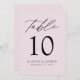 Trendy, cartões minimalistas de números das mesas de casamento com letras negras modernas com "Mesa" em um roteiro de caligrafia moderno. O design apresenta um fundo lavanda-roxo ou uma cor de sua escolha. O design repete atrás. Para solicitar os cartões de mesa: adicione seu nome, data do casamento e número da tabela. Adicione cada número ao carrinho individualmente e faça check-out quando terminar.