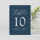 Trendy, cartões minimalistas de números das mesas de casamento com cartas brancas modernas com "Mesa" em um roteiro de caligrafia moderno. O design apresenta um fundo de marinho ou uma cor de sua escolha. O design repete atrás. Para solicitar os cartões de mesa do marinho: adicione seu nome, data do casamento e número da tabela. Adicione cada número ao carrinho individualmente e faça check-out quando terminar.