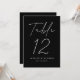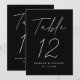 Cartões simples e modernos de números da mesa de casamento, com "Mesa", mostrados em um roteiro branco manuscrito com fundo preto (ou uma cor de sua escolha). Para solicitar os cartões de mesa preto e branco: adicione seu nome, data do casamento e número da tabela. Cada número precisa ser adicionado ao seu carrinho individualmente. Depois de terminar de adicionar cada número de tabela ao seu carrinho, basta fazer check-out e esperar que suas lindas placas de números de tabela cheguem!