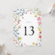 Números De Mesa De Casamento Simples De Jardim De Fairytale De Flor Selvagem Colorida Elegante. O estilo boêmico arranjou um modelo de mesa minimalista floral romântico com flores silvestres e botânicos coloridos, com a impressão em água à mão. Modelo editável para primavera, verão, outono e casamentos no inverno.