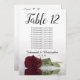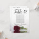 Estas belas cartas de números de mesa facilitarão aos seus convidados encontrar os seus lugares na sua recepção de casamento. Eles apresentam um design simples, mas elegante, com letras de escrita em caligrafia e um solteiro de morena enrolada, marrom, ou rosa tinto de vinho deitado em seu lado refletindo na água. O cartão inclui um quadro de lugares com 10 nomes. Há também espaço para os nomes dos casais e a data do casamento.