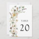 Número da Mesa de Casamento de Flores Selvagens. Esta elegante, branca, mesa de casamento de flor silvestre apresenta lindas cores aquáticas pintadas à mão, cor rosa-pincel, azul empoeirado, e flores verdes de sábio prensadas com texto preto sobre fundo branco. Encontre itens correspondentes na Coleção de Casamentos de Flores Selvagens.
