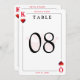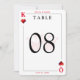 Rei e rainha de corações tocando números de recepção de casamento de cartas. Personalize-o com os detalhes do evento. Excelente para a celebração do tema Las Vegas / pôquer.