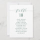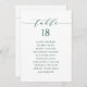 Este é um plano personalizável de número de tabela. Ele apresenta uma escrita branca verde e tipografia clássica. Personalize adicionando seus próprios detalhes. Este plano minimalista de assentos de mesas é perfeito para casamentos, chás de fraldas, chás de panela, aniversários e muito mais.