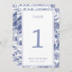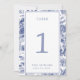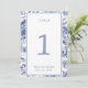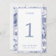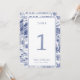 Esse sinal de número de mesa floral azul-empoeirado personalizado é perfeito para um janto de casamento, festa de noivado, chá de panela ou ensaio. O design apresenta a cor azul empoeirada com fontes simples e modernas. Personalize-os com seus números, nome e data do evento para torná-los um dos tipos!
