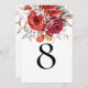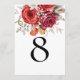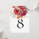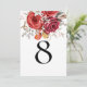 Boho Red Autumn Número da Tabela. Lindas flores autóctones em tons de outono de vermelho e laranja estão no topo. Personalize facilmente o número da tabela. O mesmo design está do outro lado.