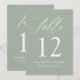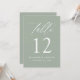 Adicione um toque de elegância ao seu casamento com nossos bonitos cartões de número de mesa, com uma caligrafia branca delicada em um fundo verde macio. Esta design moderna e sofisticada complementa casamentos de todas as estações, desde comemorações de primavera e verão até a celebração aconchegante de outono e inverno. Personalize cada cartão com seus nomes e data de casamento para um detalhe significativo e personalizado que reflita sua única história de amor. Essas placas de números de tabela combinam estilo e funcionalidade sem esforço, ajudando os hóspedes a encontrar seus assentos e aprimorando a beleza da decoração do casamento. Adicione cada número de tabela ao seu carrinho para solicitar e faça check-out quando terminar.