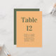 Um elegante, moderno e chic número de assentos de casamento coloca um cartão num tema de outono rústico com a floresta verde e laranja claro. Personalizar o número do lugar e os nomes do lugar reservado.