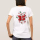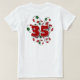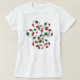 Esta camiseta temática de futebol divertido é impressa na frente e no verso com a imagem de um conjunto de bolas de futebol vermelho, verde e branco de tamanho variado - personalize com o número de camisa do atleta no verso - por katz_d_zynes