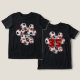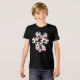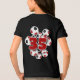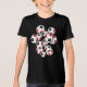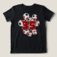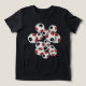 Esta camiseta temática de futebol divertido é impressa na frente e no verso com a imagem de um conjunto de bolas de futebol vermelho, preto e branco de tamanho variado - personalize com o número de camisa do atleta no verso - por katz_d_zynes
