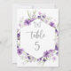 Número de mesa de borboleta prateada floral roxa