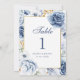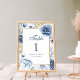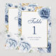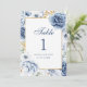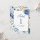 Número de Mesa de Casamento Floral Azul e Dourado