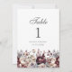 Número de Mesa de Casamento Floral Boho Borgonha