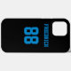 Adicione um nome e número(s) para personalizar esta capa de telefone personalizada de camisa desportiva azul e preta do céu inspirada. É um excelente presente para um fã ou atleta desportivo. As opções para alterar a cor e os tamanhos de fonte estão disponíveis.
