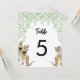 Ideal para um casamento do tema dos dinossauros, facilitem aos seus convidados de casamento encontrar o seu lugar com esta divertida noiva de dinossauro e o número da mesa do noivo. Basta adicionar o número da tabela para cada mesa usando os modelos simples para criar um gráfico de números de tabela de dois lados. Engraçado noiva T-Rex e noiva em matizes marrons com a folhagem verde da selva irão encantar seus convidados e trazer diversão pré-histórica dino para a ocasião. Arte original da artista Catherine Sweetman