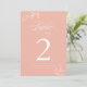 Número de Tabela Rosa Melão de Caligrafia Elegante