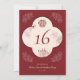 O Elegante número da mesa de casamento Floral Dupla Xi é a adição perfeita a qualquer celebração de casamento chinesa. Este cartão de número de tabela de 5 x 7 polegadas, extremamente projetado, apresenta elegantes motivos florais e o símbolo tradicional "Xi Duplo", representando felicidade e boa sorte. Feito com atenção aos detalhes, este cartão de número de tabela adiciona um toque de sofisticação à sua decoração de casamento. Cada carta é uma bela mistura de tradição e elegância, fazer uma escolha encantadora para assentos no seu casamento chinês.