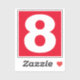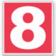 Número Oito. Número 8 Número individual como autocolante. Vermelho e Branco.