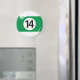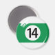 Imã de geladeira com uma bola de bilhar verde e branca, catorze com reflexo. Natal perfeito ou presente de aniversário para jogadores de bilhar. As dezesseis bolas estão disponíveis em portas copos, adesivos, ímanes, chaveiros e ornamentos.