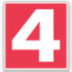 Número Quatro. Número 4 Número individual como autocolante. Vermelho e Branco.