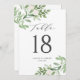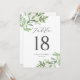 Adicione um sotaque verde ao seu evento com estas placas de números de tabela personalizáveis. Apresenta um verde-aquoso e flores brancas. Personalize adicionando seus detalhes. Essas placas de números de tabela personalizadas são perfeitas para primavera e casamentos no inverno, chás de panela, festas de aniversário e muito mais.