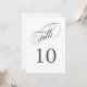 Um cartão de número de tabela elegante em branco com texto de cinza de carvão escuro com belos scripts de caligrafia que soletra a palavra "mesa". Este design do tamanho de 5 por 7 polegadas é uma escolha maravilhosa para casamentos, banquetes, jantas, almoços e festas. O esquema de cores neutras funciona bem em todos os temas. Para criar números de tabela para cada mesa, personalize uma placa de solteiro para a Mesa 1 e adicione ao carrinho, depois personalize uma placa de mesa para a Mesa 2 e adicione ao carrinho, e assim por diante até que você tenha uma placa para cada mesa.