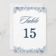Elevem sua decoração de casamento com esses números da mesa de casamento Elegante da Flor Branca Azul. Apresentando um design clássico com delicados sotaques florais azuis e brancos, esses números de tabelas complementarão sem problemas qualquer tema de casamento elegante ou romântico. Ideal para guiar seus convidados a seus assentos com estilo, esses números de mesas são funcionais e bonitos, perfeitos para adicionar um toque de sofisticação às suas mesas de recepção. Impresso em estoque de cartão de qualidade superior, eles oferecem um acabamento profissional que melhora a aparência geral do seu dia especial.