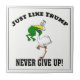 O azulejo cerâmico "Nunca Desistir" (assim como Trump) apresenta uma ilustração humorística e motivacional de um determinado sapo sufocando um pelicano que está tentando engoli-lo, simbolizando a perseverança contra a adversidade. presente corporativo excelente para inspiração.