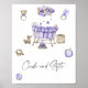 O convite mostra a aquarela de um berço bebê, um berçário móvel na forma de nuvens roxas redondas, brinquedos para crianças: um elefante roedor, um pato sobre rodas, um ursinho de pelúcia, um coelho, uma bíblia, um pacificador, uma pirâmide.