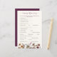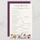 O Nursery Rhyme Baby Game apresenta flores silvestres de cor d'água pintadas à mão em tons de burgundy, ouro, creme e roxo, complementadas por um verde exuberante. Ideal para qualquer estação, as flores silvestres são organizadas em um buquê lateral atordoante, oferecendo uma estética moderna e fresca. Com um padrão arrojado no verso, este cartão de jogo combina versatilidade e sofisticação, fornecendo uma atividade divertida e na moda para os convidados do chá de fraldas aproveitarem.